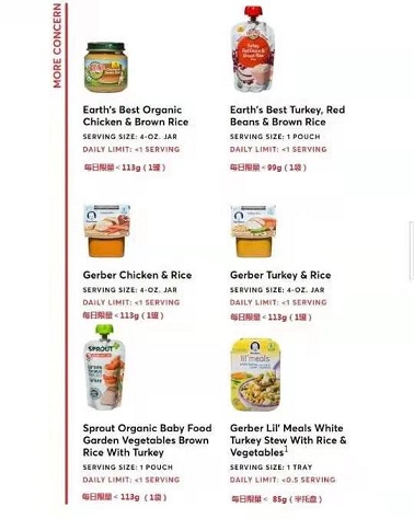 這份報告披露的產(chǎn)品中,不乏有嘉寶(Gerber)、地球最好(Earth's Best)、禧貝(Happybaby) 等多款在中國很暢銷的輔食品牌。