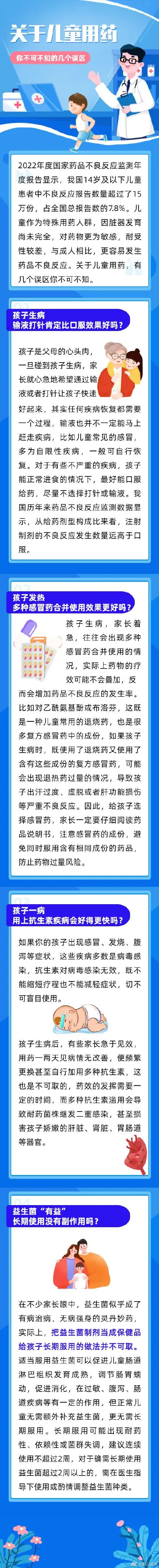 2022年度國家藥品不良反應(yīng)監(jiān)測年度報(bào)告顯示,我國14歲及以下兒童患者中不良反應(yīng)報(bào)告數(shù)量超過了15萬份,占全國總報(bào)告數(shù)的7.8%。兒童作為特殊用藥人群,因臟器發(fā)育尚未完全,對藥物更為敏感,耐受性較差,與成人相比,更容易發(fā)生藥品不良反應(yīng)。關(guān)于兒童用藥,有幾個(gè)誤區(qū),戳圖了解!