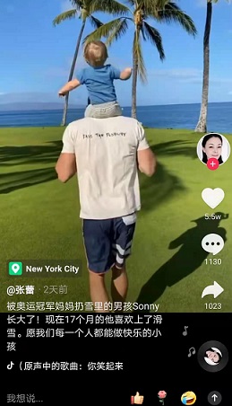 視頻里的男孩只有17個(gè)月大,但在視頻一開始就是媽媽將男孩拋起落進(jìn)了深深的雪中,接下來(lái):媽媽背著他穿越齊腰深的雪海;爸爸將他扛在肩膀,在藍(lán)藍(lán)的海邊綠如地毯的草地上慢跑,男孩不斷揮舞著雙臂;男孩叼著奶嘴,光著身子在開玩具車;男孩在雪地上滑行,落入在下面等待的媽媽的懷里。
