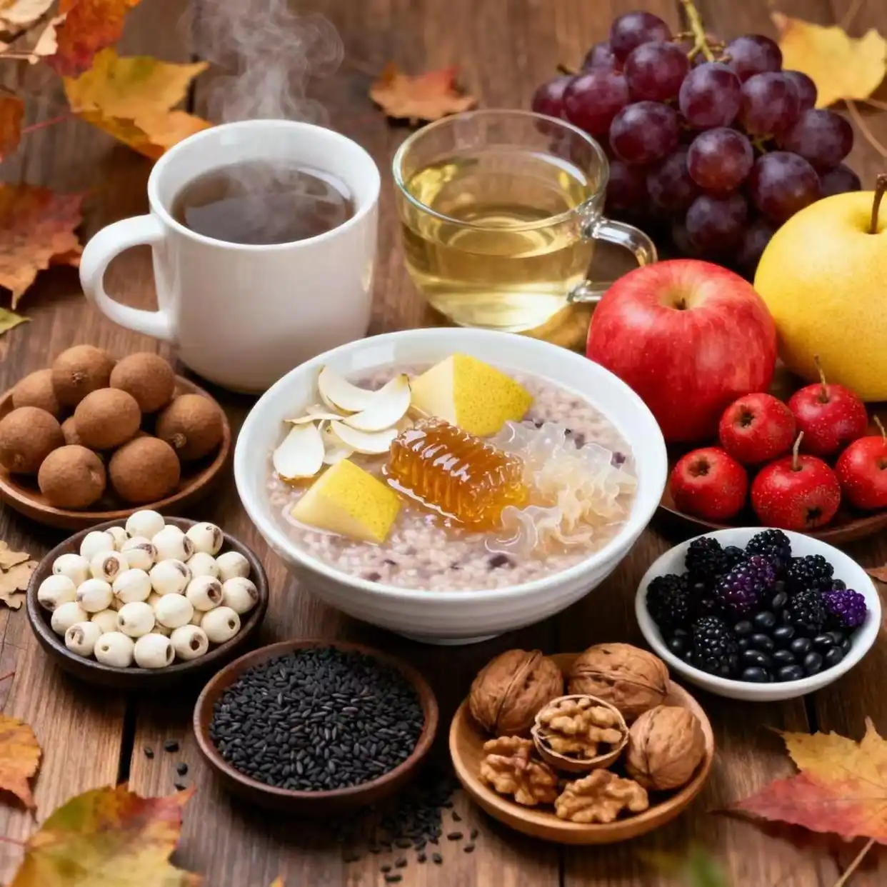 重陽(yáng)正值深秋,氣候干燥,容易上火。日常飲食需堅(jiān)持滋陰潤(rùn)燥的原則:多喝熱水、淡茶或粥,粥里可加入蜂蜜、梨、百合、銀耳等潤(rùn)肺健脾之物,也推薦適量食用葡萄、蘋(píng)果、山楂、柚子等可以生津止渴的酸味食品。