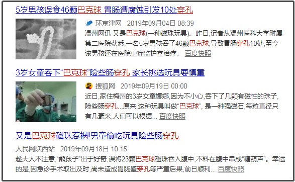 最后親貝網(wǎng)小編想說,不管誰買玩具,都要考慮玩具的質(zhì)量以及安全性,像央視曝光過的一次事件中,一位孩子就在玩網(wǎng)紅玩具“巴克球”時,將磁力珠誤吞進肚子,導致危及生命。