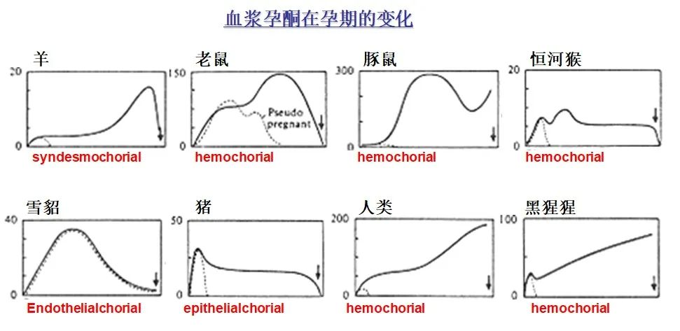 在新生兒要出生前大約一周左右,肺內(nèi)分泌的液體開始減少。至于胎兒是怎么知道自己該什么時候出生,這是一個很奇妙且沒有弄明白的事情。大多數(shù)動物在分娩前母體內(nèi)孕酮(維持子宮靜息的激素)會下降,孕酮水平下降伴隨著子宮收縮發(fā)生,但人類卻不是這樣(圖1)。