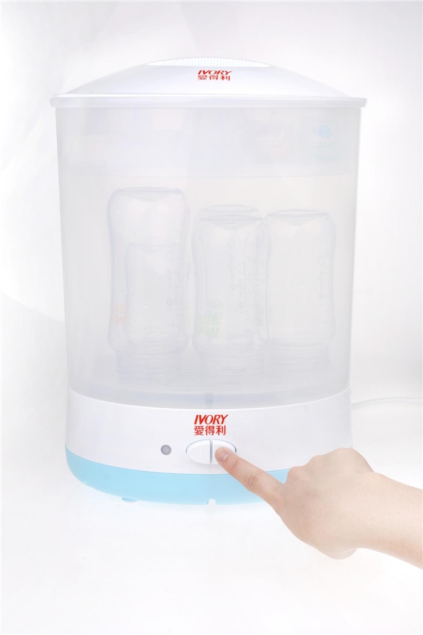 蒸汽消毒:使用蒸汽消毒鍋消毒比水煮消毒更加方便省事。以愛得利蒸汽消毒鍋為例,家長們只需要在清洗干凈奶瓶及各部件后,將它們分別放進(jìn)蒸汽鍋里,加水蓋好上蓋,開啟電源即可。消毒完成后愛得利蒸汽消毒鍋會(huì)自動(dòng)斷電,不用費(fèi)心一直盯著,冷卻后用奶瓶夾將奶瓶及配件取出,放置于通風(fēng)處晾干備用,可以說是超級(jí)省心省力!