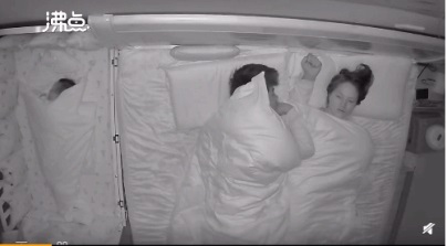 突然驚醒的妻子似有不安,他像哄孩子一樣輕拍著妻子的后背,不久夫妻二人重新躺下。