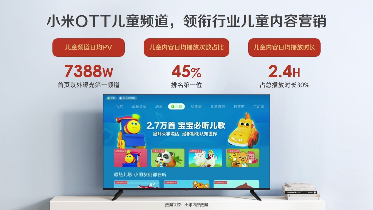 作為兒童內(nèi)容營(yíng)銷的佼佼者,小米OTT匯聚了超過(guò)13000個(gè)兒童在線節(jié)目、7500多部動(dòng)畫片和27000多首兒歌,為家庭提供了豐富多樣的娛樂(lè)選擇。憑借對(duì)內(nèi)容生態(tài)的精心建設(shè),小米OTT成功吸引了眾多家庭用戶,成為他們不可或缺的親子陪伴伙伴。
