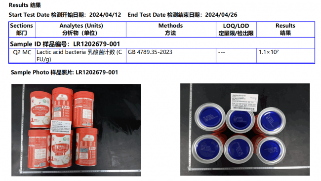 據(jù)老爸抽檢在社交媒體賬號(hào)上發(fā)布的信息顯示,秋田滿滿有機(jī)嬰幼兒米粉,在模擬50攝氏度的沖泡條件下進(jìn)行檢測(cè),活菌數(shù)依然達(dá)到1.1*10^7CFU/g。