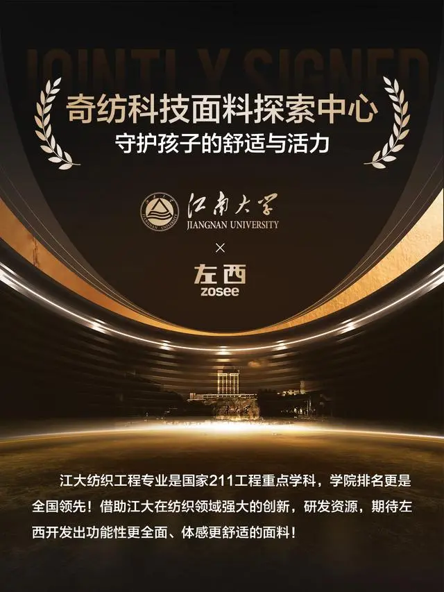 作為國貨童裝品牌,左西始終堅持品牌沉淀與面料研發(fā)創(chuàng)新,以高品質(zhì)、多功能、價格合理的產(chǎn)品滿足不同年齡段、不同需求兒童的日常、戶外穿著需求。今年,左西童裝攜手江南大學(xué)創(chuàng)立“奇紡科技面料探索中心”,左西不僅提升了產(chǎn)品的舒適度和安全性,更贏得了消費(fèi)者的廣泛認(rèn)可。