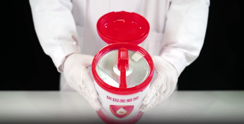 開蓋后,我們可以看到貝因美愛加的奶粉勺,鋁箔膜,以及專門設(shè)計(jì)的勺子放置卡槽,首次開蓋時(shí),勺子被固定在鋁箔膜上方,開蓋后,奶粉勺可放置在卡槽中,做到勺粉分離,減少奶粉污染可能。