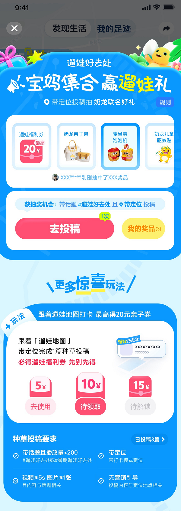 三、遛娃地圖上線,收獲好禮體驗再升級