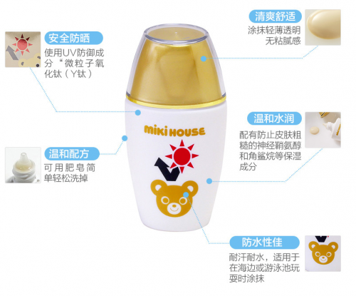 MIKI HOUSE UV防曬乳即使是薄涂也能防御99%以上的有害紫外線。使用UV防御成分“微粒子氧化鈦(Y鈦)”,對皮膚刺激很小,涂抹后不發(fā)熱。用香皂即可簡單卸掉,是一款非常方便的寶寶防曬。