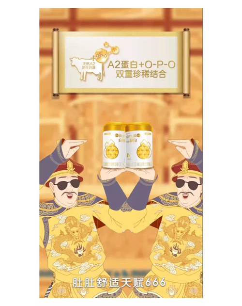 最近,一首抖音神曲走紅媽媽圈,據(jù)說聽過的媽媽,都可以和寶寶一覺睡到自然醒。在視頻開篇,通過小皇子哭鬧365日吸引了媽媽們的注意力,為了解決小皇子哭鬧問題皇上命萬國進獻珍品,其中以愛爾蘭為小皇子進貢的啟賦atwo大金罐的高顏值吸引了皇上的眼光。在包裝設計上,金色是啟賦Atwo大金罐的主色調(diào),金罐設計和金色包裝,寓意著產(chǎn)品無論從奶源、技術、營養(yǎng)到形象都追求者皇家般的品味。