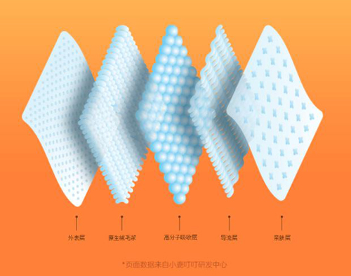 作為紙尿褲新國貨領導者,小鹿叮叮藍甘菊紙尿褲絲柔親膚,更舒適。薄約1.8毫米,輕至31克,輕盈合體。數(shù)據(jù)來源于小鹿研發(fā)中心,L碼紙尿褲實測數(shù)據(jù)。比一般的紙尿褲薄三分之一,卻蘊含5層鎖水結構,2層吸收結構。高分子吸水體在尿褲鎖水層均勻分布,吸收量更大,不斷層不起坨。