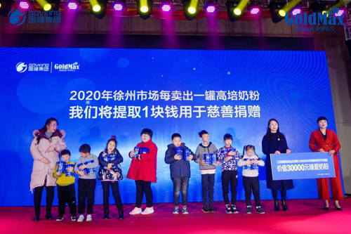 確實,江蘇國健今天取得的成功碩果離不開在場全體合作伙伴的支持與努力,但也同樣離不開消費者對高培的認可與信賴。江蘇國健深知取之于社會,用之于社會的責(zé)任感,在感謝會現(xiàn)場向徐州市牌樓培智學(xué)校捐贈了價值3萬元的高培臻愛奶粉,江蘇國健總經(jīng)理沈紅霞女士表示,2020年徐州市場每賣出一罐高培奶粉將會捐贈一元錢用于慈善捐贈,讓更多困境中的人感受到慈善的溫暖。