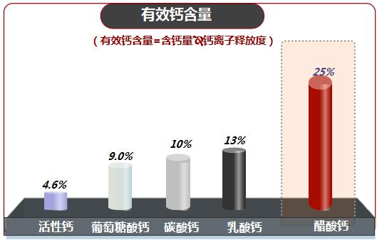 金丐醋酸鈣的成分屬于有機(jī)鈣,有較好的水溶性,每100ml水中可溶解34700mg,有效含鈣量高達(dá)25%,相比碳酸鈣每100ml水中僅可溶解1.5mg,金丐醋酸鈣是溶解度最高的鈣。另外,金丐醋酸鈣產(chǎn)品更加溫和也更容易被吸收,對于消化能力較弱的兒童、胃酸分泌量少的的老人以及妊娠期的孕婦都可適用,對比碳酸鈣,金丐醋酸鈣補(bǔ)鈣效果更佳。