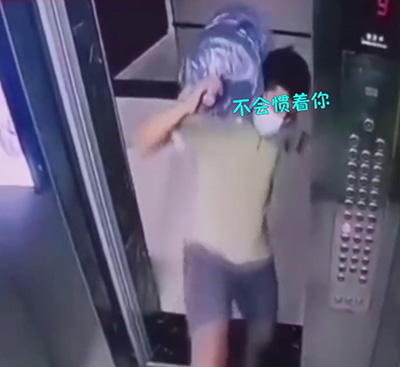 電梯在到達(dá)九樓后門就打開了,女子先行一步走了出去,男子便跟在后面??删驮谀凶觿倓傔~腳準(zhǔn)備走出電梯的時候,她旁邊的小男孩突然間惡搞他,故意伸出腳拌了他一下。