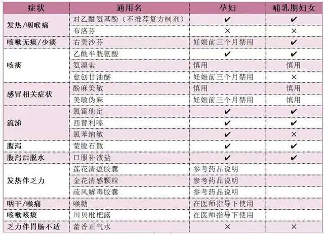 若出現(xiàn)其他嚴(yán)重臨床癥狀,如嚴(yán)重鼻塞鼻堵,可選擇西替利嗪、氯雷他定;如出現(xiàn)嚴(yán)重的干咳,可選擇右美沙芬,但需注意在早孕期禁用;如出現(xiàn)咳嗽咳痰,可首選乙酰半胱氨酸,或慎重選擇氨溴索,但需注意,后者在早孕期不推薦使用。