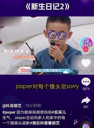 Jasper刪掉視頻惹媽媽生氣 應采兒教育方法獲網(wǎng)友點贊