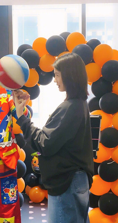 章子怡戴著獨(dú)角彩色假發(fā),她摟著女兒醒醒玩球,看起來(lái)比女兒玩得還要開心??吹贸鰜?lái),這一次一家五口過(guò)萬(wàn)圣節(jié),章子怡真的是嗨翻了。