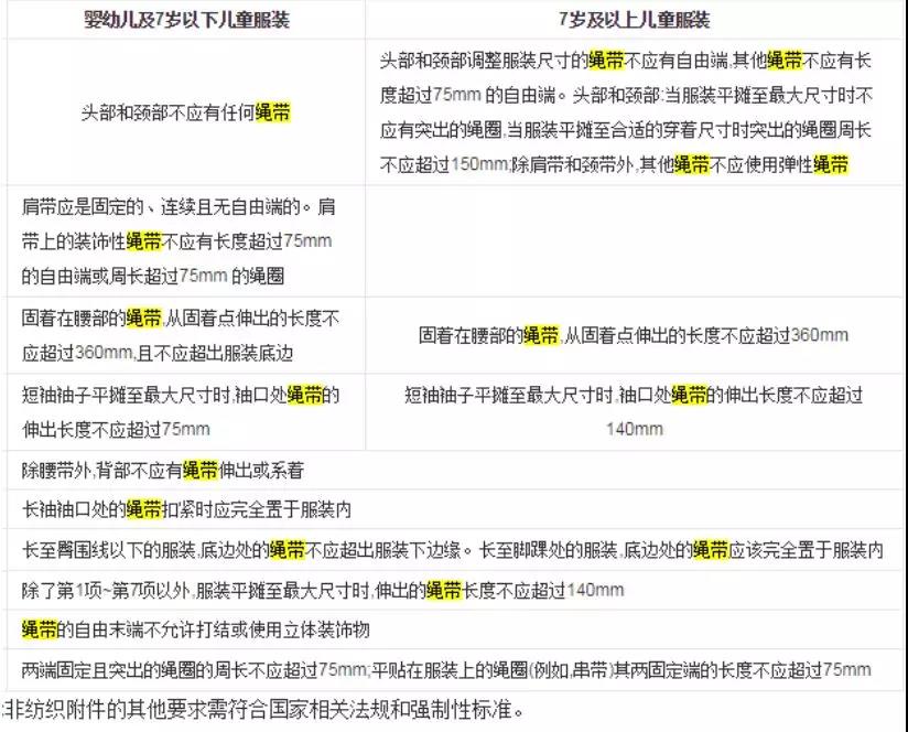 但是值得注意的是,我國和國際上對兒童服裝中的繩帶都有比較高的要求,裝飾性的繩帶存在造成兒童窒息的危險。以我國為例,嬰幼兒及7歲以下兒童服裝頭部和頸部不應(yīng)有任何繩帶,其他位置的要求如圖。7歲及以上兒童服裝在繩帶的要求上同樣有比較嚴格的要求。