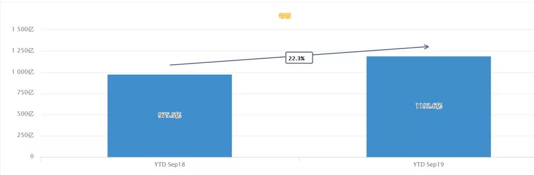 導(dǎo)讀:根據(jù)ECdataway數(shù)據(jù)威顯示,截至到2019年9月,母嬰線上規(guī)模達(dá)1192.6億,比2018年同期增長22.3%??梢?,中國母嬰市場規(guī)模還在持續(xù)增長,但與2019年7月同期增速相比,增長已逐漸放緩。其中嬰兒奶粉表現(xiàn)如何?又能體現(xiàn)什么樣的發(fā)展格局?